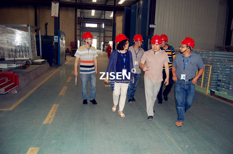 隨后,來訪嘉賓來到公司實(shí)驗(yàn)室。分別就實(shí)驗(yàn)室建置、聲學(xué)測試中心概況、人力資源現(xiàn)狀等內(nèi)容與工作人員進(jìn)行了互動交流。在結(jié)束實(shí)驗(yàn)室的考察后,公司生產(chǎn)副總經(jīng)理張軍陪同客人參觀了生產(chǎn)車間,并重點(diǎn)陪同客人了解了公司的隔聲門及降聲罩生產(chǎn)線。